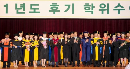 건국대학교(총장 김진규)는 22일 11시 새천년관 대공연장에서 김경희 이사장, 김진규 총장, 김순도 총동문회장, 재학생과 교수, 졸업생동문, 학부모 등 1,000여 명이 참석한 가운데 ‘2011학년도 후기 학위수여식’을 개최했다.